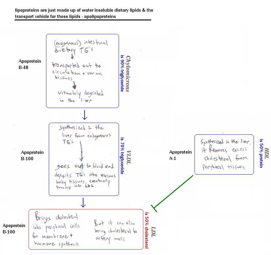I was having difficulty figuring out the lipoprotein story until I made this diagram. It’s simplistic but it helped me answer most questions I came across concerning this topic
