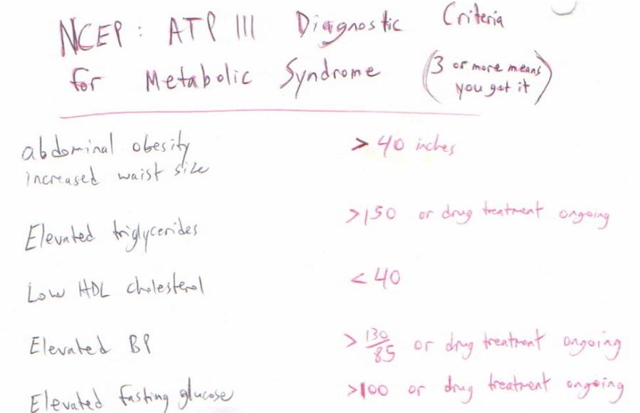 questions concerning the diagnosis of metabolic syndrome come up fairly regularly during practice exams